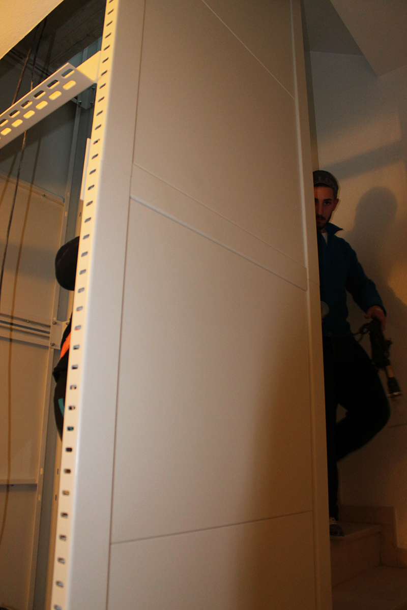Eliminación barreras / Ascensores / Estructura ascensorAunque aparentemente un inmueble no disponga de hueco para el ascensor, o nunca haya tenido, se puede conseguir en muchos casos la incorporación del mismo. Este es un ejemplo, con una estructura totalmente creada para incorporar un ascensor donde nunca ha estado.